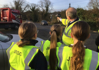 The JRSOs joined the Community Speed Check Team to carry out their weekly speed checks in the village. The Community Speed Check Team carry out the checks in different locations around the village encouraging drivers to drive carefully and to keep to the speed limits.