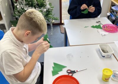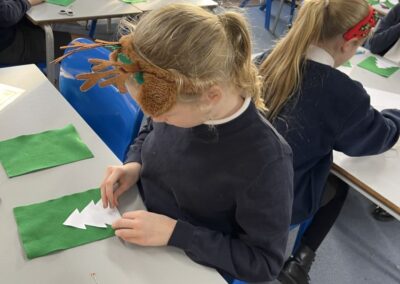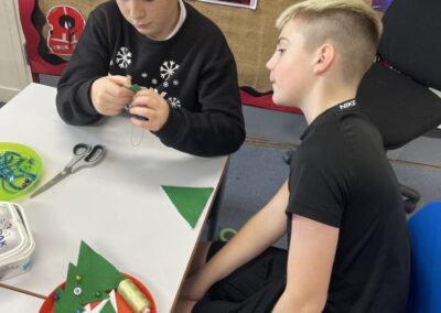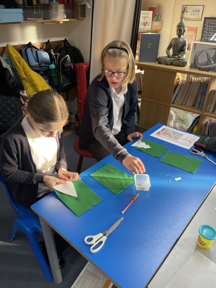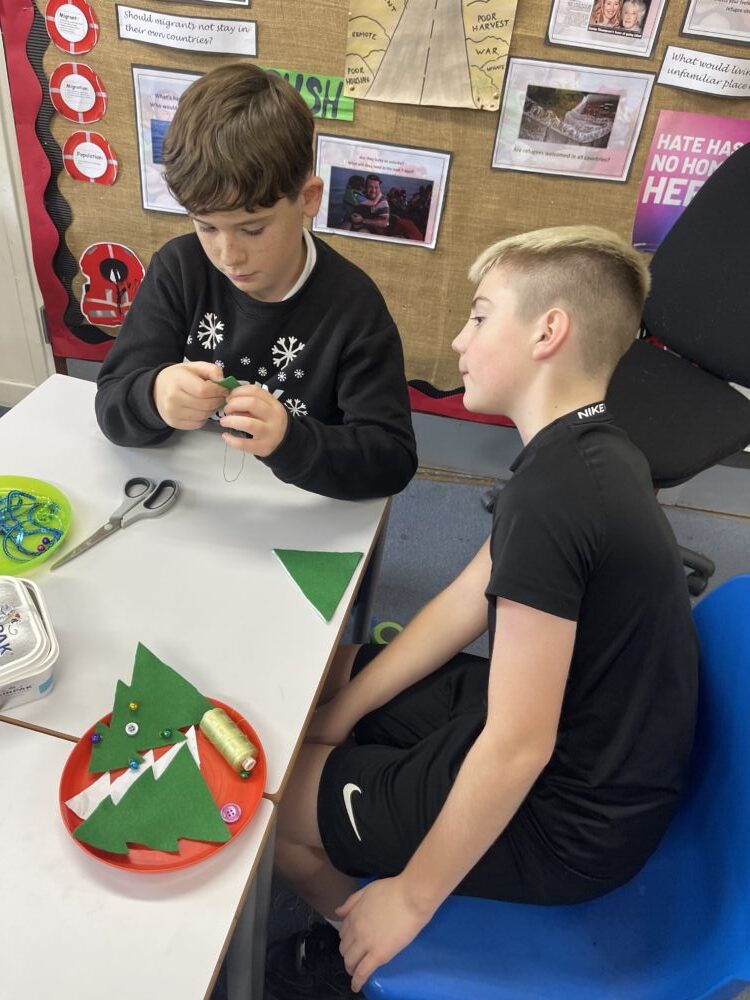 We have been using our sewing skills to make a Christmas tree decoration – it’s not as easy as you think but they have done a sterling job and it has been lovely to watch the children support each other with this challenging task!